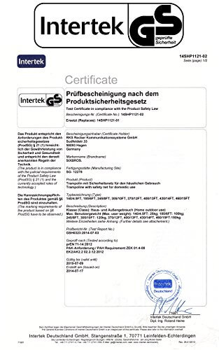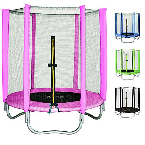 Das Trampolin mit Sicherheitsnetz bietet den Vorteil, dass die stabile Qualität viele Belastungen mit Kindern oder leichten Erwachsenen optimal trägt. Es sollte nicht ständig im Freien stehen, damit das extra dicke und sehr strapazierfähige Material nicht leidet. Das Gartentrampolin kann jedoch mit einer leichten, wasserfesten und außerdem gepolsterten PVC-Hülle abgedeckt werden, falls es doch im Freien stehen sollte. Das SixBros SixJump ist ein Trampolin mit einer dekorativen Randabdeckung in einer passenden Farbe. Diese schützt beim Springen vor den Federn. Das Gartentrampolin wurde in den USA hergestellt und hier speziell für Kinder gestaltet. Das Benutzergewicht darf 25 Kilogramm nicht übersteigen.